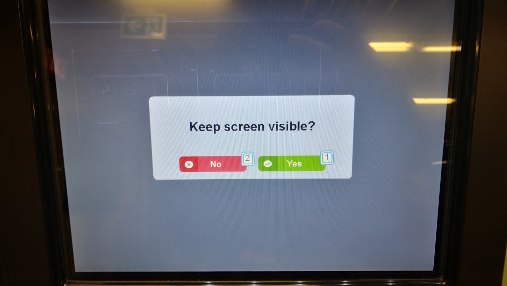 After I chose English by press 1 and then chose “Load/Check Presto Card” by press 1, the screen shows a new page, and the sound in my earphone also gives me new instructions. The new page asks whether to keep the screen private or not. If one presses 1, the page will turn into a normal page about loading value. If one presses 2, then the page will be locked and set as private. This is a very accessible design since it can protect the personal information of those people who couldn’t see. All the steps have detail sound instructions and could be done on the pin pad, which provides much convenience for people who may have difficulty to do this thing. This design makes the machine suitable for almost all people. This is a really amazing design of accessibility.